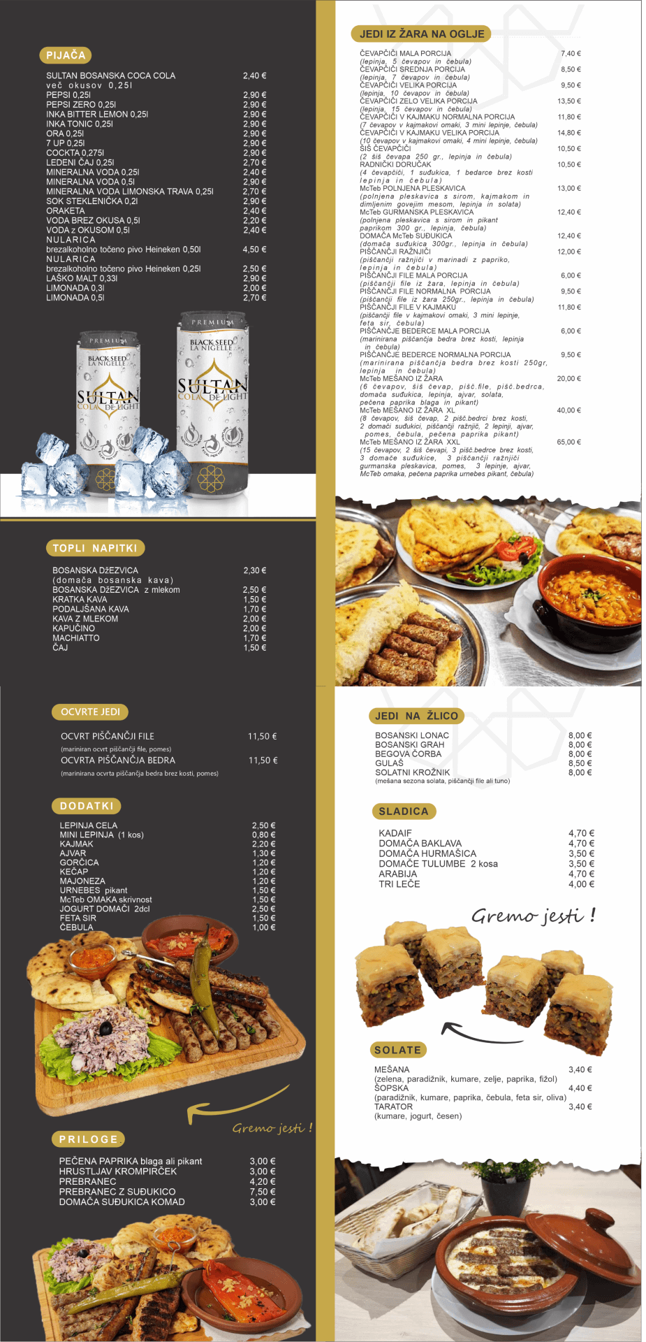 Restavracija z bosansko kuhinjo. Tradicionalni recepti. Prijetna notranjost.